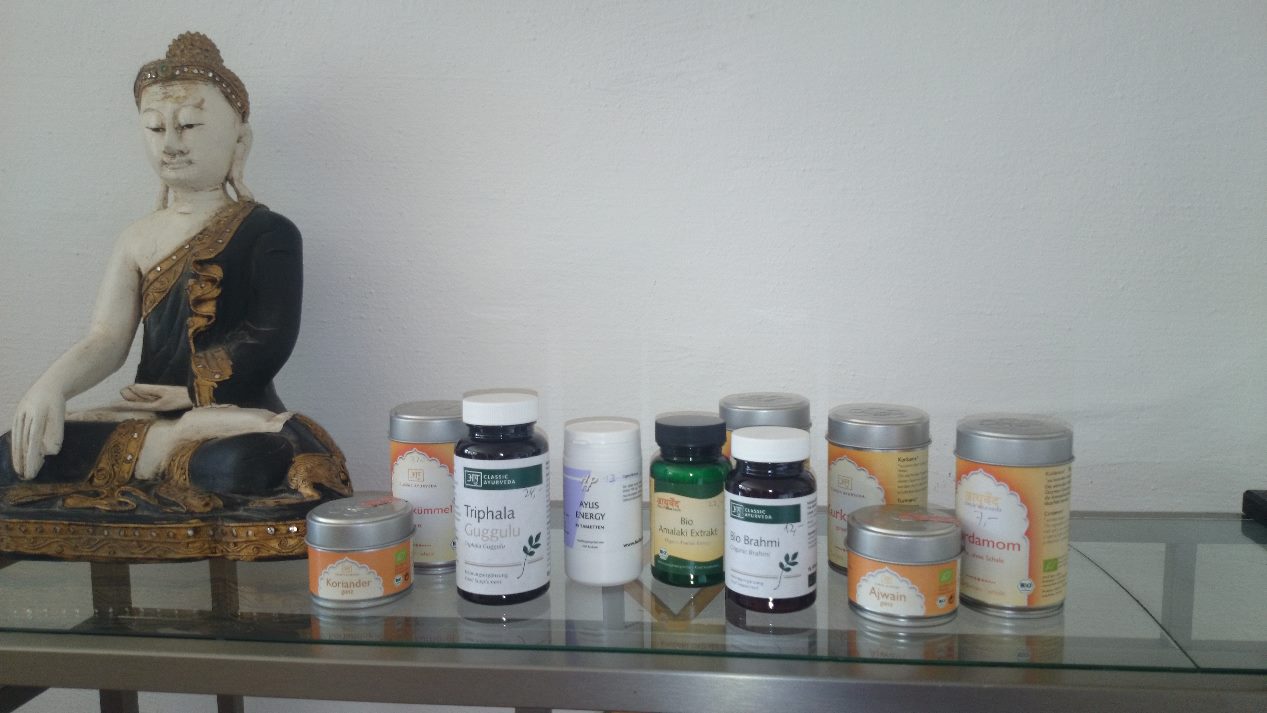 Ayurveda ShopGenießen Sie Ihre GesundheitIn meinem kleinen Shop finden Sie eine große Anzahl an ayurvedischen Tees, ausgefallene Gewürze, Mung Dal, Verschiedene Salze, Sharkara Zucker mit dem besten PH Wert, Aloe Vera, Nasenspülkännchen, Zungenschaber, Nasenöle und vieles mehr. Auch eine große Auswahl an ayurvedischen Nahrungsergänzungsmitteln: Zum Beispiel: Bei Verdauungsbeschwerden, Schlafproblemen, innerer Unruhe, Übergewicht, Burn Out. Verschiedene Vitamine und Mineralien, Fischölkapseln (Omega3 Fettsäuren) Auch finden Sie einige der bekannten Öle von Bruno Zimmer: Alle Nahrungsergänzungsmittel sind durch Europäische Labors geprüft! |